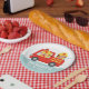 Party supplies with cute cartoon design for that red fire truck birthday party! Design features a striking and bright fire truck that has a yellow ladder on its side, a cute fire fighter boy in the driver seat and a little fire fighter dog at the back preparing a hose to extinguish the fire. Personalise easily with your party message. Great for birthdays parties for birthday boys!