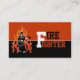 Fire fighter/fireman eye catching business cards black red-orange, featuring a fire fighter with his axe in flames on black and red-orange/grenadier background. An effective profile card with a professional look. Some elements courtesy of vectorportal.com.