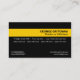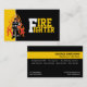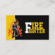 Fire fighter/fireman eye catching business cards black yellow, featuring a fire fighter with his axe in flames on black and yellow background. An effective profile card with a professional look.