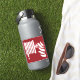 Fire hose reel and flame icon on red background.