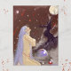 Original art. A lady with purple hair, meteors falling from the sky, the moon seems to be held by a very strong tree and a magic wand is protected inside a globe.