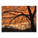 A nature photograph of a winter morning sunrise with brilliant orange/red clouds creating a silhouette of the bare walnut tree limbs in Rural Tennessee.