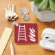 Fire ladder and flame icon on red background. Custom text at the back side.