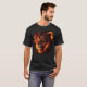 I give wanted to give this a 4 instead of a 5 because these Basic DARK T0shirts run unexpectedly SLIM or Narrow. Which is great if you do not have a potbelly, but I have a paunch. It isn't the shirt's fault that I've got a beer belly. The design and shirt itself is a quality cotton shirt. The color is more of a deep purple, but still a very pretty color. The Basic DARK T-shirts run a bit SLIMMER than the Basic Ts. The neck is a fraction narrower (or seems to be narrower) also. I'm a paunchy middle-aged woman and my neck is 12 inches (31cm) thick and the neckline fell about the same as in the photo of the man, and I had the desire to tug it a bit. So if you're a thick necked man or like loose shirts, be aware these are slimmer shirts. Once I get rid of my lockdown paunch it'll look great. The shirt washed well in cold water with no apparent bleeding. We don't have a dryer, so it hung dry. Did not shrink. Love the colors and the design. The design looks smaller on my shirt than it does on the model on-line. But still, it looks good on the shirt. The printing looks as it does on the model, just the size seems fractionally smaller. Washed garment in cold water, hung dry and design appeared unaffected.