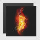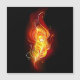 Bright peacock feather made of fire and flame on black background.