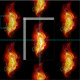Bright peacock feather made of fire and flame on black background.