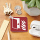 Fire protection door and flame icon on red background. Custom text at the back side.