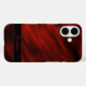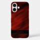 This phone case features an abstract design with red and black diagonal streaks resembling waves or ripple. It almost looks like silk fabric. There is a black band across the bottom with space for your name. Simple, elegant and stylish.