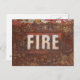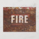 Fire sign on rusted steel plate. Gift for fireman? Postcard