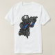 This design would look fantastic on a white T-shirt, as the vibrant colours—black, grey, blue, and red—would stand out sharply against the clean, bright background. The detailed illustration of the tactical soldier would create a bold and eye-catching centerpiece.