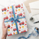 This fire truck birthday wrap is perfect for your little firefighter's party. The design feature a red fire truck with a dalmatian in the driver's seat.