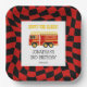Fire Truck Black Red Chequered 2nd Birthday Paper Plate