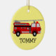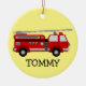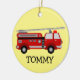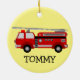 Fire Truck Ceramic Ornament with customisable background colour and text.