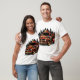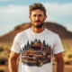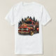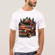 This custom T shirt features A classic red fire truck with flames and a skull design, set against a cityscape backdrop. symbolising bravery and heroism,