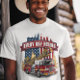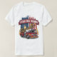 This custom t shirt features An illustration of a red fire truck with firefighters against a backdrop of the American flag. symbolising bravery and heroism,