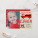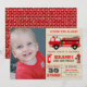 Amaze your guests with this cool birthday party invite featuring a beautiful fire truck and cute fire fighting equipment against a beige background. Simply add your event details on this easy-to-use template and adorn this card with your child's favourite photo to make it a one-of-a-kind invitation. Flip the card over to reveal a red bricks pattern on the back of the card.