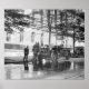 Antique fire truck being used to wash what might be the Senate Office Building, 1923. Old fire department picture. Probably Washington, D.C.