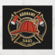 Firefighter NAME Fireman Fire Department - Emblem with Red Helmet and Axe. Customise with your Name, Station/Dept Number and location.
