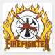 Firefighters badge with ladder, nozzle and axe with fire background. Cool Firefighter text, great gift for firefighters, fire departments and supporters!