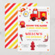 Sound the alarm and celebrate in style with this fun firefighter birthday party invitation! Featuring bold fire truck graphics, helmets, hydrants, and stars in vibrant red, yellow, and orange, this design is perfect for little heroes who love firefighting adventures. Ideal for toddler birthdays, this customisable invite makes it easy to add your party details while creating a memorable keepsake. Bring excitement to your childs special day with a playful fire rescue theme that guests will love.