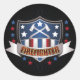 Firefighters Crest with crossed firefighting axes against a red, white and blue patriotic crest! Star burst background with surrounding red and blue stars! Firefighter banner, perfect for firefighters and firefighting supporters! Customisable firefighter gift!