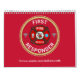 This universal calendar is decorated with Firefighter images and shields, the year and holidays can be changed to suit your needs.
