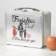 Celebrate the unwavering bond between a firefighter father and his child with this touching lunchbox featuring the phrase "Firefighter Dad, I'll Be There For You" alongside a father and son silhouette. This artwork captures the essence of dedication, protection, and love inherent in firefighter families.