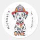 Firefighter Dalmatian Wild One 1st Birthday Party Classic Round Sticker