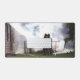 A desk mat featuring a photo of firefighters battling a fire.