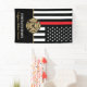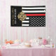 This design features a firemen's flag with black and white stripes, and a thin red line stripe as well. "Congratulations" and a fireman's badge sits above the name of the graduating firefighter. This design also works great for retiring firefighters, lieutenants, or chiefs. Celebrate in style!