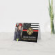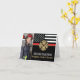 This design features a firemen's flag with black and white stripes, and a thin red line stripe as well. "Congratulations" and a fireman's badge sits above the name of the graduating firefighter. This design also works great for retiring firefighters, lieutenants, or chiefs. Celebrate in style!