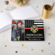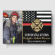 This design features a firemen's flag with black and white stripes, and a thin red line stripe as well. "Congratulations" and a fireman's badge sits above the name of the graduating firefighter. This design also works great for retiring firefighters, lieutenants, or chiefs. Celebrate in style!