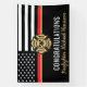This design features a firemen's flag with black and white stripes, and a thin red line stripe as well. "Congratulations" and a fireman's badge sits above the name of the graduating firefighter. This design also works great for retiring firefighters, lieutenants, or chiefs. Celebrate in style!