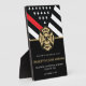 This design features a firemen's flag with black and white stripes, and a thin red line stripe as well. "Congratulations" and a fireman's badge sits above the name of the graduating firefighter. This design also works great for retiring firefighters, lieutenants, or chiefs. Celebrate in style!