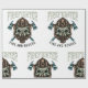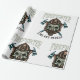 A scary face in a mask with firefighter fire and rescue around it. This design looks really effective on these Wrapping Paper