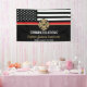 This design features a firemen's flag with black and white stripes, and a thin red line stripe as well. "Congratulations" and a fireman's badge sits above the name of the graduating or retiring firefighter, lieutenant, or chief. Celebrate in style!