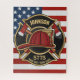 Firefighter NAME Fireman Fire Department USA Flag design - Emblem with Red Helmet and Axe. Customise with your Name, Station/Dept Number and location.