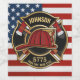 Firefighter NAME Fireman Fire Department USA Flag design - Emblem with Red Helmet and Axe. Customise with your Name, Station/Dept Number and location.