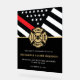 This design features a firemen's flag with black and white stripes, and a thin red line stripe as well. "Congratulations" and a fireman's badge sits above the name of the graduating firefighter. This design also works great for retiring firefighters, lieutenants, or chiefs. Celebrate in style!