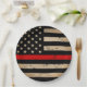 Add the finishing touch to your firefighter retirement or firefighter graduation party with these thin red line rustic fireman paper plates and party supplies. USA American flag design in Firefighter Flag colours, distressed design on natural distressed wood. This fireman retirement collection will be a favourite. See our thin red line collection for matching fireman retirement invitations, firefighter gifts, party favours, and supplies. COPYRIGHT © 2020 Judy Burrows, Black Dog Art - All Rights Reserved. Firefighter Fireman Thin Red Line Paper Plate