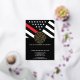 This design features a firemen's flag with black and white stripes, and a thin red line stripe as well. A fireman's badge sits above all of the party details for the graduating firefighter. This design also works great for a retiring firefighter, lieutenant, or chief's retirement party.