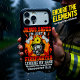 A striking depiction of a firefighter’s helmet adorned with a gas mask, surrounded by vibrant flames. This powerful imagery represents the courage and dedication of firefighters ready to face any challenge amid the inferno..