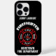 Red Fire Department logo. Personalise with your name and department. Great for firemen and first respondents.