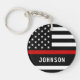 Personalised Thin Red Line Keychain - American flag in Firefighter Flag colours, modern black red design . Personalise with firefighter name, or fire department. This personalised firefighter keychain is perfect for fire departments, fire service,or as a memorial keepsake and fire department Christmas gifts o\r stocking stuffers. COPYRIGHT © 2020 Judy Burrows, Black Dog Art - All Rights Reserved. Firefighter Personalised Modern Thin Red Line Keychain