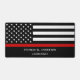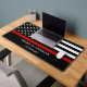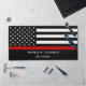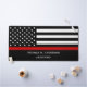 Thin Red Line Firefighter Desk Mat - American flag in Firefighter Flag colours, modern black and red design . Personalise with firefighter name and rank. This personalised firefighter desk mat is perfect for fire departments and fire service and fireman . COPYRIGHT © 2023 Judy Burrows, Black Dog Art - All Rights Reserved. Firefighter Personalised Thin Red Line Desk Mat