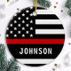 Personalized Thin Red Line Ornament - American flag in Firefighter Flag colors, modern black red design . Personalize with firefighter name, or fire department. This personalized firefighter ornament is perfect for fire departments, fire service,or as a memorial keepsake and fire department Christmas gifts o\r stocking stuffers. Order these firefighter ornaments bulk wholesale for the fire academy or fire department gifts, firefighter christmas stocking stuffers. COPYRIGHT © 2020 Judy Burrows, Black Dog Art - All Rights Reserved. Firefighter Personalized Modern Thin Red Line Ceramic Ornament