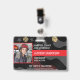 The customizable fire department ID badge features a firefighter emblem at the top that can be customized to your department as well as a place for the state logo as well. Customize with the firefighter's photo on the left. Beside the photo, the firefighter’s name, badge number, rank, and department are displayed. Add your own barcode to the back of the card, along with issue and expiration dates, and description of the firefighter, captain, chief, or office employee.