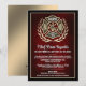 Classic gold Maltese cross design on a rich red & gold accented background for these custom, personalized text firefighter retirement party invitations.