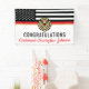 This design features a firemen's flag with black and white stripes, and a thin red line stripe as well. "Congratulations" and the fireman's badge text sits above the name of the graduating or retiring firefighter, lieutenant, or chief. Celebrate in style!