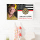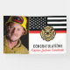 This design features a firemen's flag with black and white stripes, and a thin red line stripe as well. "Congratulations" and a fireman's badge sits above the name of the graduating or retiring firefighter, lieutenant, or chief. Celebrate in style! Customise even further with a photo of the retiring firefighter.